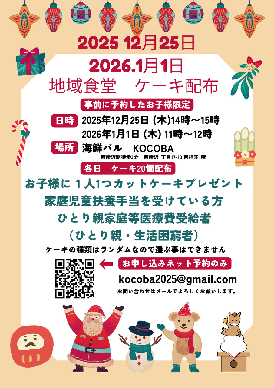 お子様にクリスマス・お正月にケーキをプレゼントいたします。